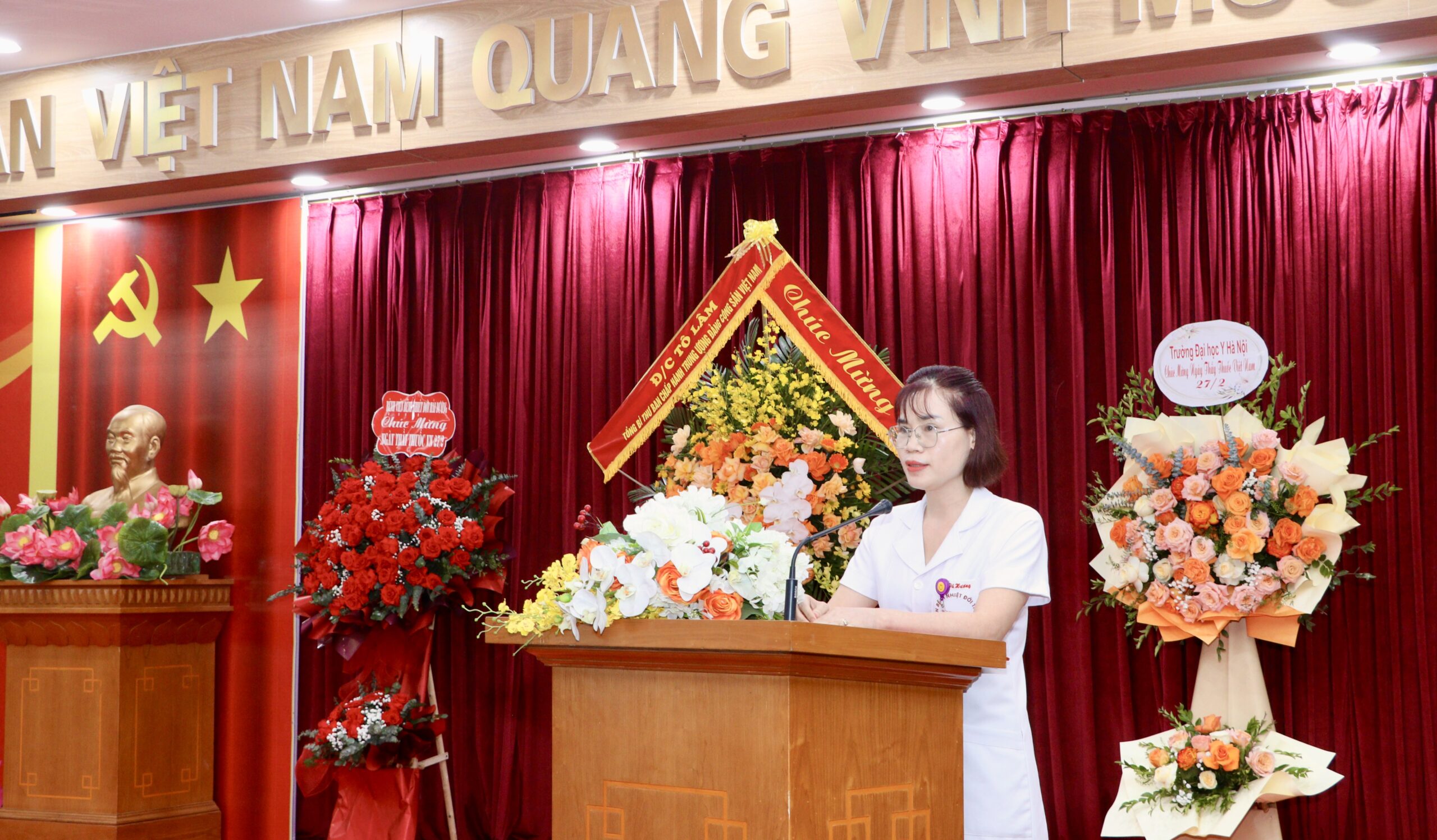 Mở đầu buổi lễ, các đại biểu đã cùng nghe TS.BS Phạm Ngọc Thạch trân trọng đọc lại Thư của Hồ Chí Minh gửi Hội nghị cán bộ y tế đầu năm 1955. Qua những lời căn dặn sâu sắc của Bác, mỗi cán bộ y tế thêm một lần được nhắc nhở về trách nhiệm cao cả trong sự nghiệp chăm sóc và bảo vệ sức khỏe nhân dân, về tinh thần đoàn kết, tận tụy phục vụ người bệnh và giữ gìn phẩm chất người thầy thuốc theo lời dạy “lương y như từ mẫu”. Những giá trị ấy tiếp tục trở thành kim chỉ nam để đội ngũ y, bác sĩ không ngừng rèn luyện chuyên môn, nâng cao y đức và xây dựng nền y học khoa học, dân tộc, nhân văn, kết hợp hài hòa giữa y học cổ truyền và y học hiện đại.