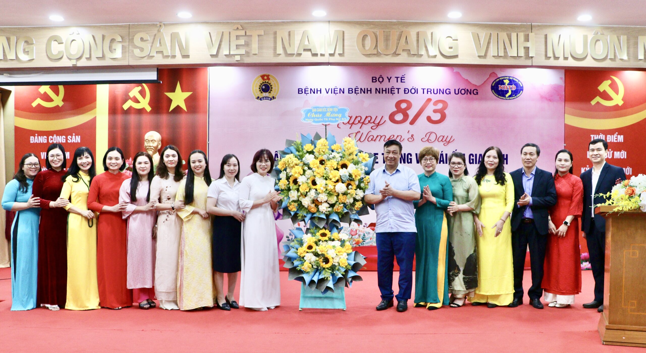 Nhân dịp này, thay mặt Đảng ủy và Ban Giám đốc, TS.BS Phạm Ngọc Thạch đã trao tặng lẵng hoa tươi thắm tới toàn thể nữ viên chức và người lao động của bệnh viện như một lời tri ân sâu sắc.