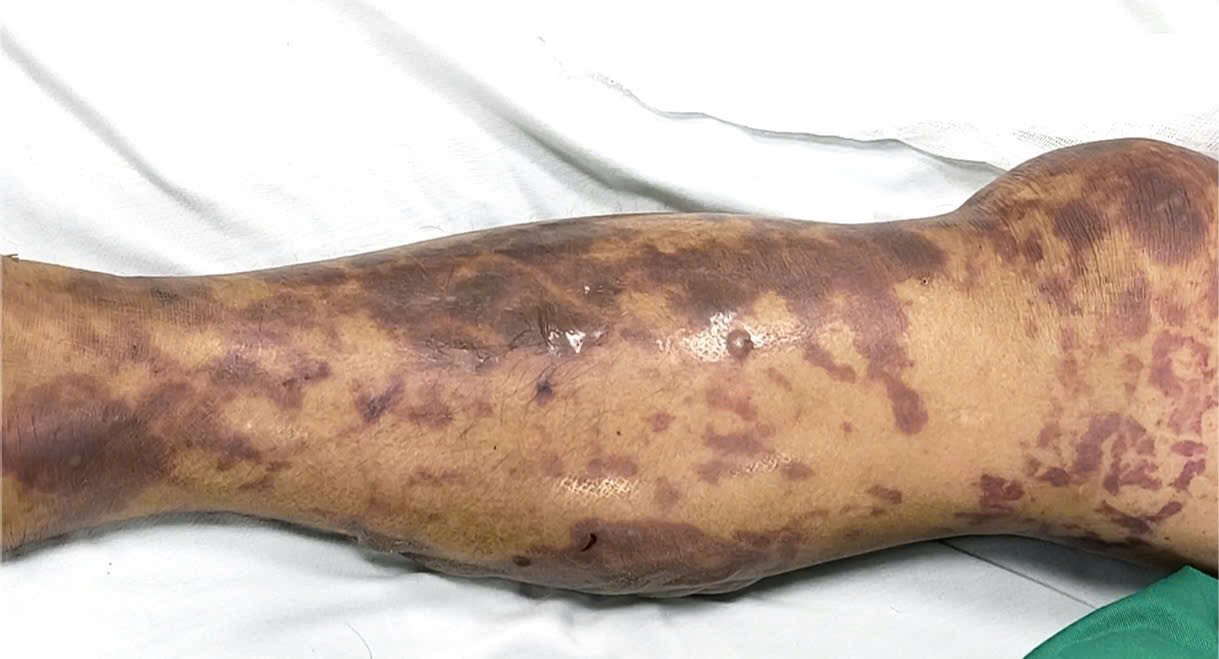 Tại Trung tâm Hồi sức tích cực, bác sĩ Trần Văn Kiên cho biết bệnh nhân nhập viện trong tình trạng sốc nặng: mạch nhanh nhỏ khó bắt, huyết áp 90/60 mmHg, da niêm mạc nhợt, xuất hiện nhiều ban xuất huyết dạng tử ban ở mặt, thân mình và hai chi. Xét nghiệm cho thấy tiểu cầu giảm sâu từ 21 G/L xuống còn 13 G/L, rối loạn đông máu, suy thận cấp. Ngay lập tức, bệnh nhân được lọc máu liên tục cấp cứu và làm xét nghiệm sinh học phân tử. Kết quả Real-time PCR dịch não tủy khẳng định dương tính với Neisseria meningitidis – vi khuẩn não mô cầu, tác nhân lây truyền qua đường hô hấp.