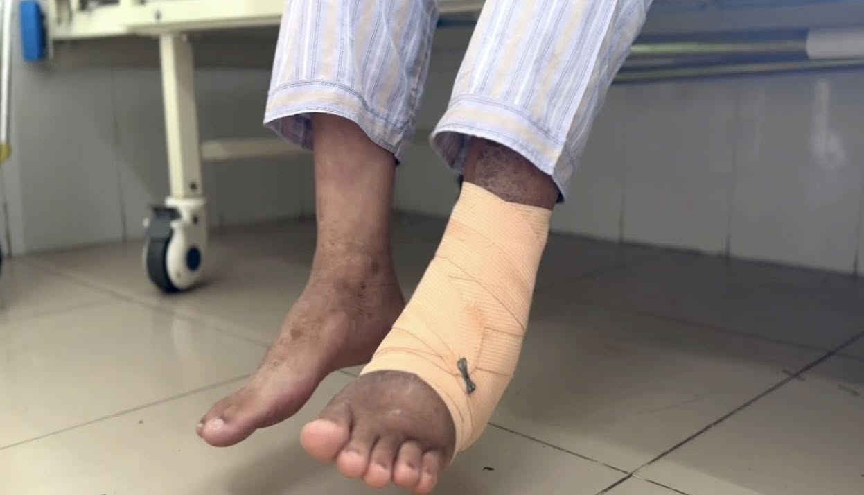 Đến tháng 8/2025, anh P. bệnh nhân nhập Khoa Chấn thương chỉnh hình và thần kinh cột sống, Bệnh viện Bệnh Nhiệt đới Trung ương. Sau khi kiểm soát tình trạng viêm mô mềm, các bác sĩ đánh giá hình ảnh tổn thương cổ chân và hội chẩn liên viện với Trung tâm Chấn thương Chỉnh hình ( TP. Hồ Chí Minh) để đưa phương án tối ưu.